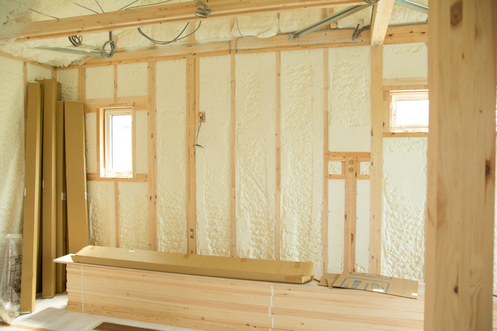 現場発泡で構造体に隙間なく密着する高気密・高断熱材。長期間にわたり断熱性能が劣化しにくく、建物の伸縮にも柔軟に対応します。
