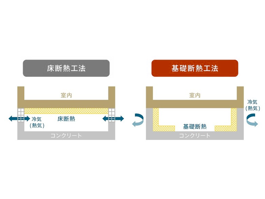 基礎の外周をぐるっと断熱材で包み込む工法。床下結露や木材腐朽を防止し、室温を安定させます。夏は涼しく、冬は冷えにくい省エネな住環境を実現します。