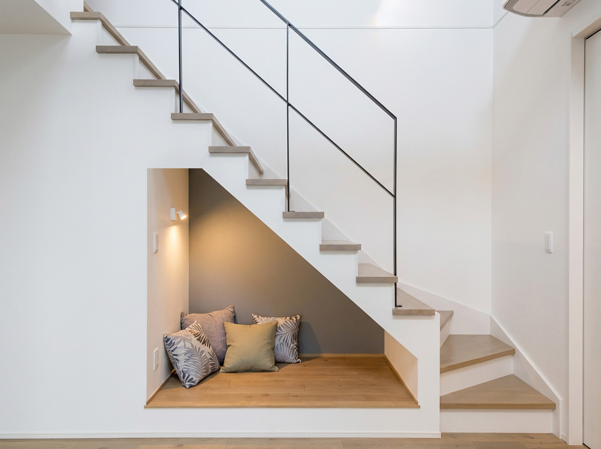 リビング内に居心地の良いくつろぎスペースを設け、そこで本を読んだり、お茶を飲んだり。いろんな用途に使えます。